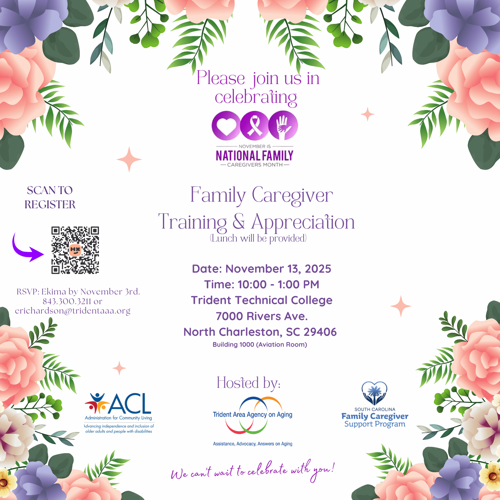 The Trident Area Agency on Aging is hosting a Family Caregiver Training & Appreciation event.