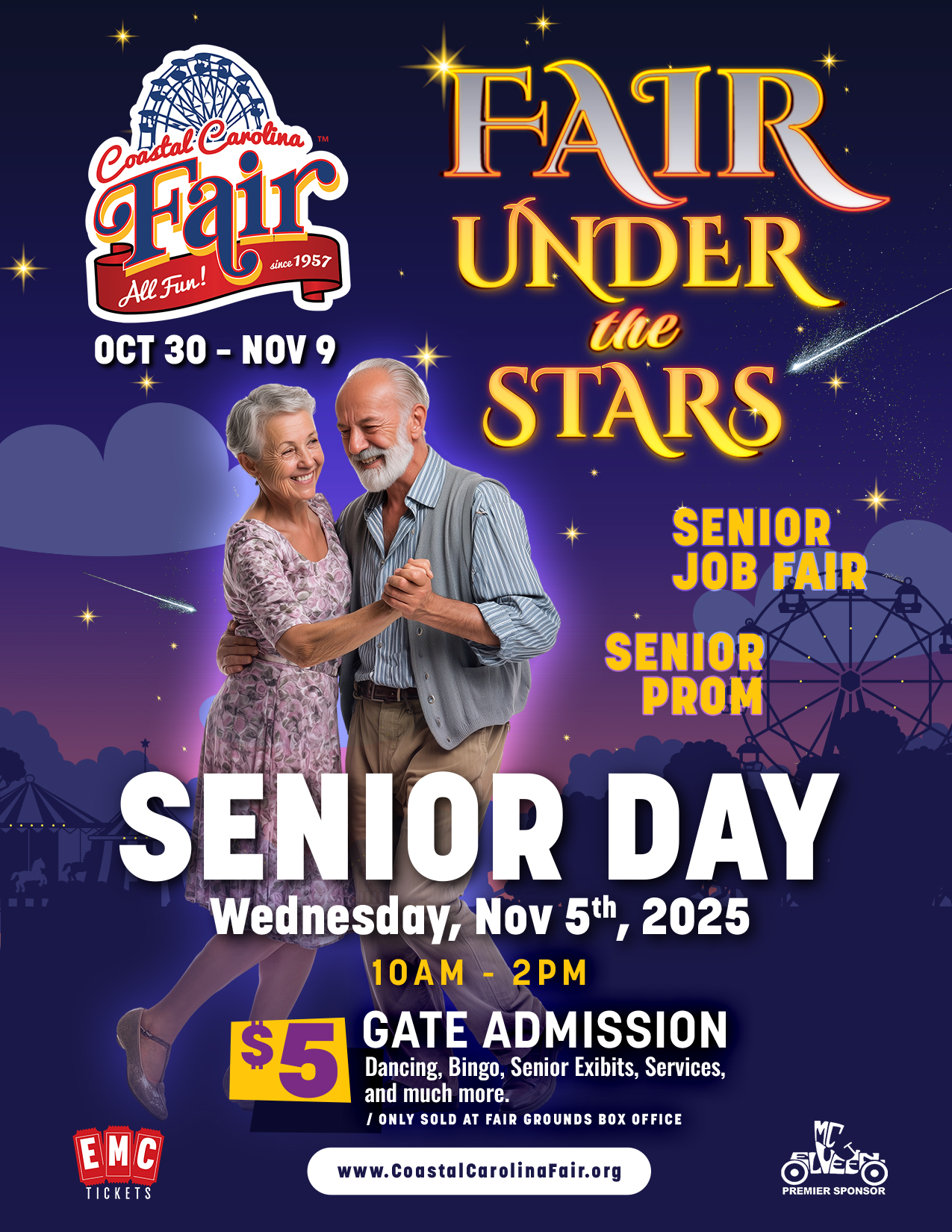 The Coastal Carolina Fair is hosting Senior Day on Wednesday, November 5 from 10 a.m. to 2 p.m.